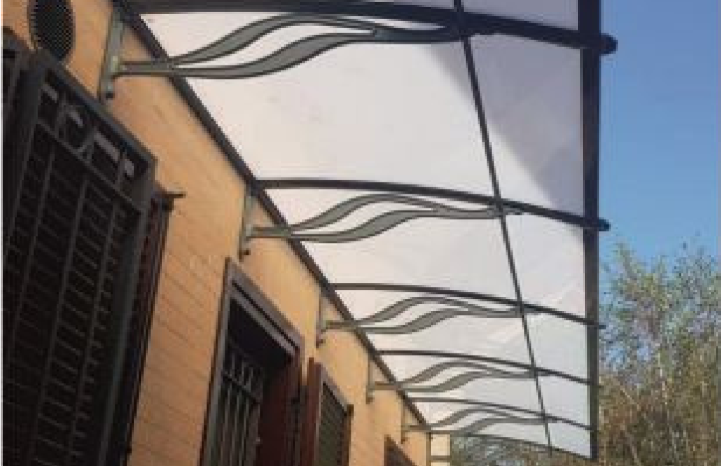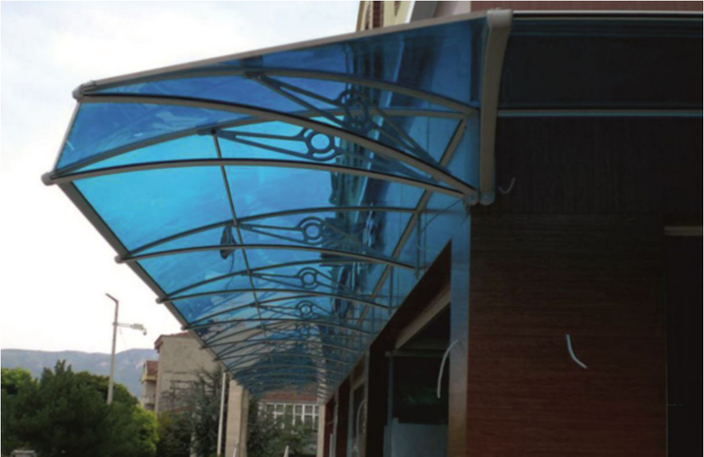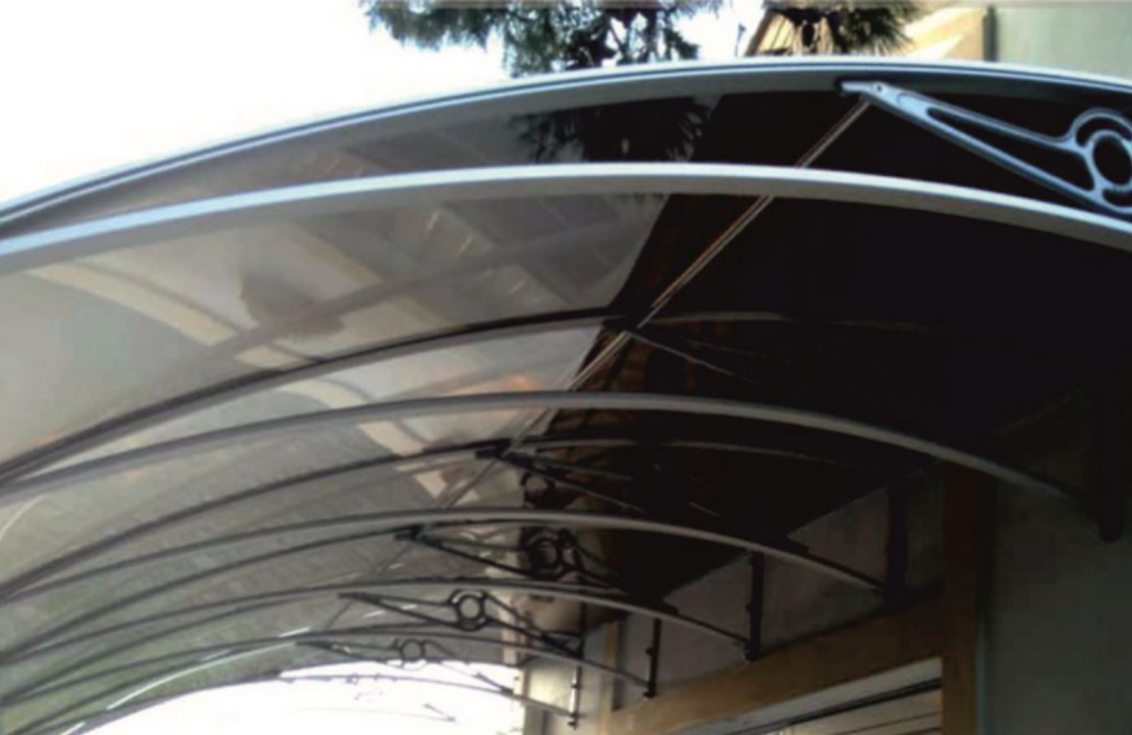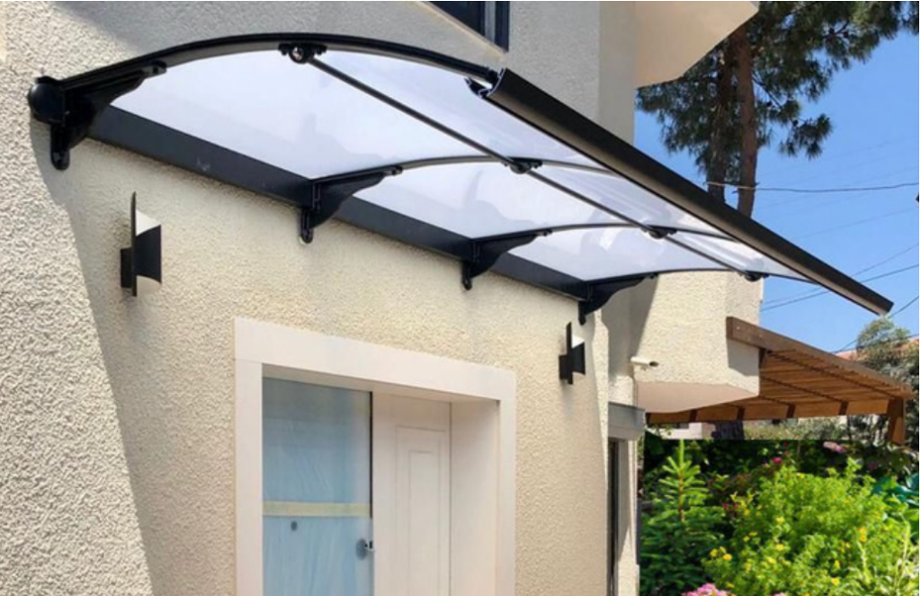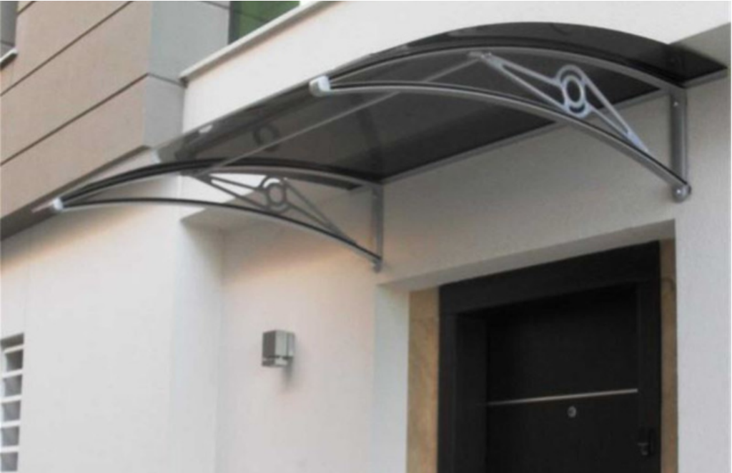 TF-Delux Kapı Üstü Sundurma modelinin taşıyıcı kolları anodize alüminyumdan üretilmektedir. Çatı malzemesi 4mm PMMA olup, %100 UV filtreleme özelliğine sahiptir.